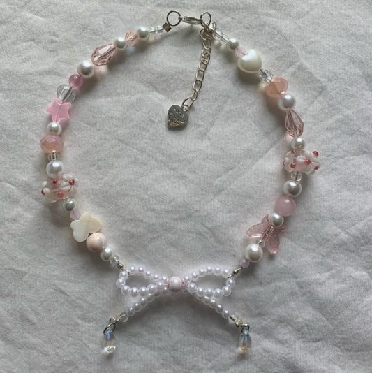 Cotton Candy Bow Beaded Necklaces Faux Pearls Stars