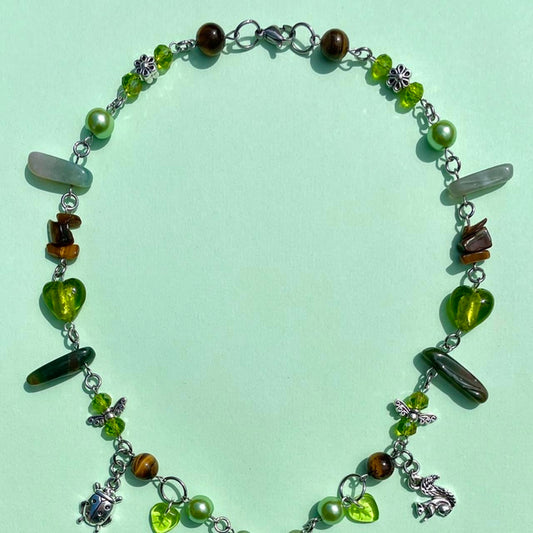 Cottagecore Fairy Grunge Green Brown Beaded Necklace