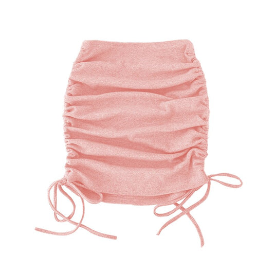 Cute Comfy Ribbed Draw String Stretch Skirt