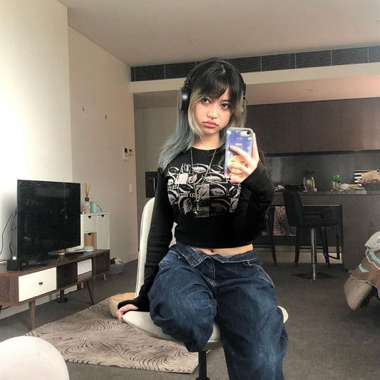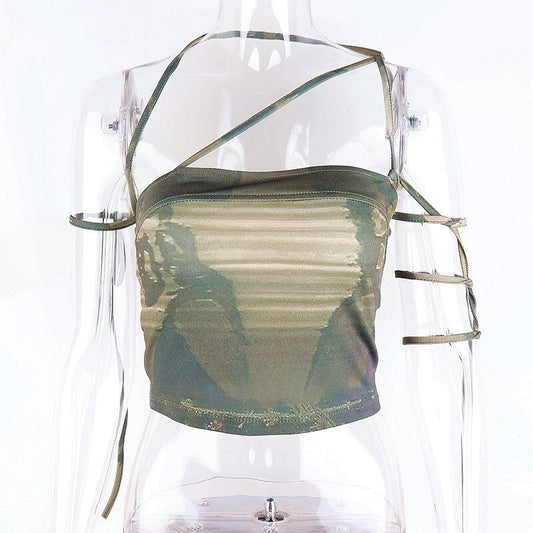Strappy Cut Out Asymmetrical Long Sleeve Crop Top