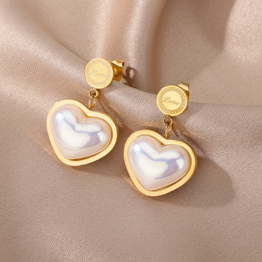 Stainless Steel Heart Pearl Earrings