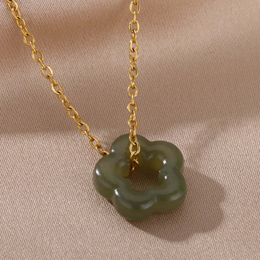Natural Green Stones Pendant Necklaces Stainless Steel Chain